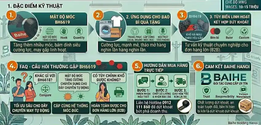 Băng Gai Dính Hình Xu Và Lưng Vuông Trơn loại 2 Baihe BH6619