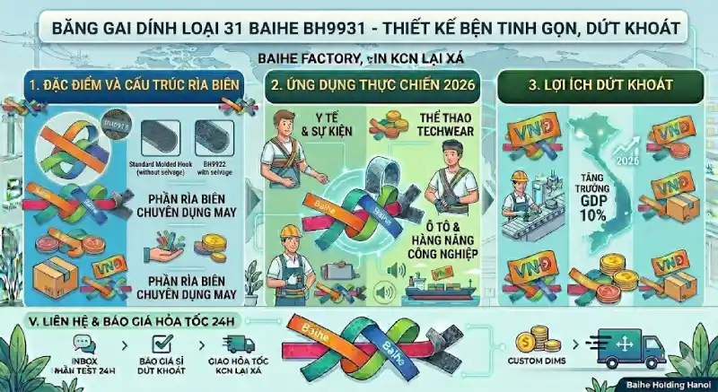 Để đặt mua Băng Gai Dính Loại 31 BH9931 vui lòng inbox fanpage Baihe Holding Hanoi.