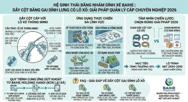 Dây cột băng gai dính lưng có lỗ xỏ Baihe: Giải pháp quản lý cáp chuyên nghiệp 2026